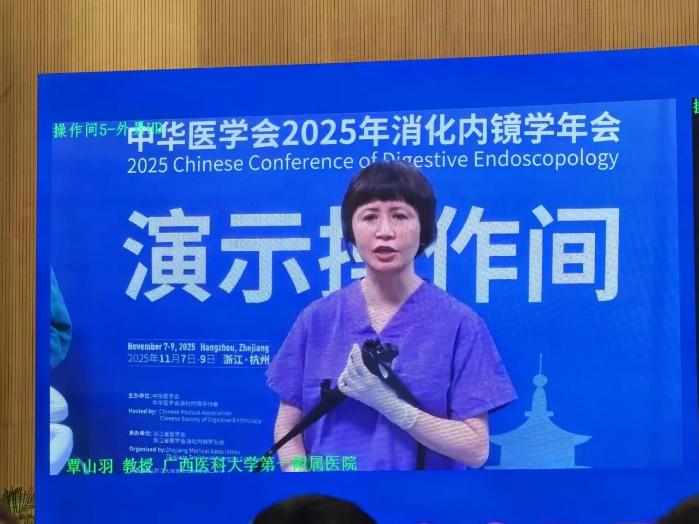 此前,在中日学术交流大会上,覃山羽教授受邀代表中华医学会消化内镜学分会在会场发表“中国超声内镜的创新与发展”专题英文演讲,向国际国内同行分享中国超声内镜技术的创新成果与发展趋势;通过现场内镜操作演示胰岛素瘤内镜消融治疗,以及胰岛素瘤内镜消融治疗专家共识解读报告,引发全场热烈讨论,赢得同行广泛关注与高度评价。