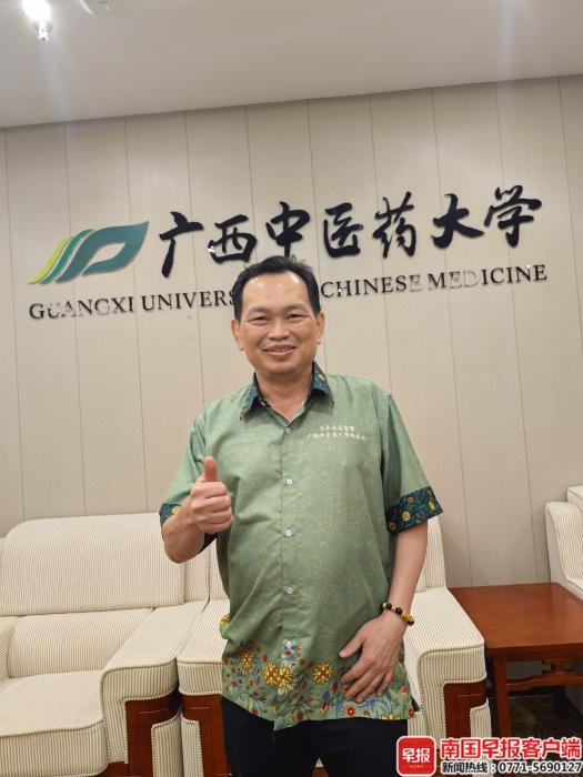 毕业后,黄保民有幸拜入韦贵康、韦立富两位中医名家门下,学习正统的骨伤手法与针灸理论。他说,广西中医药大学的骨骼调理传统手法尤为精湛。求学时,他不仅深入细致了解专业解剖学知识,还熟悉了罗汉果、陈皮等各类道地药材。每次回马来西亚前,黄保民总会专程前往南宁中医药文化地标——中尧路,甄选各类道地中药材带回去。